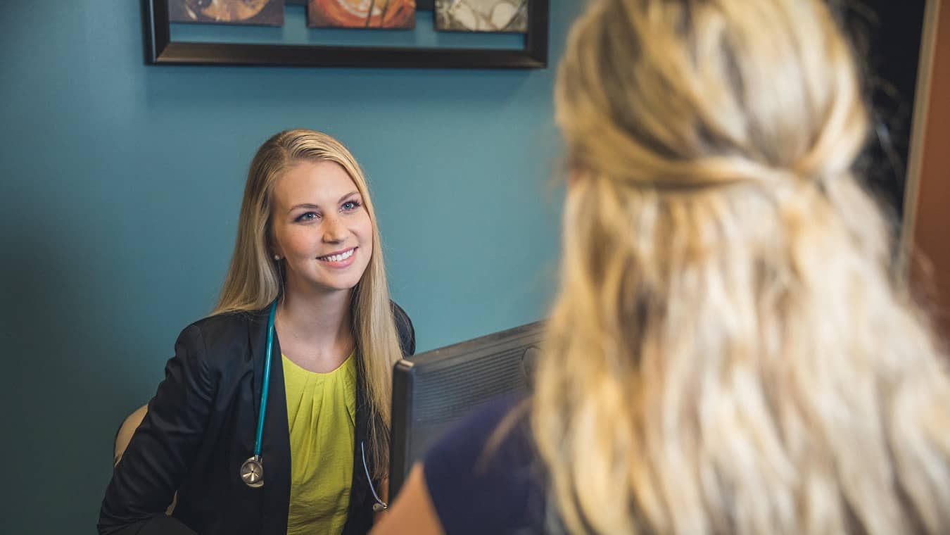 A healthcare professional greets a visitor: Pursue Regent’s nursing home administrator program online or on campus in Virginia Beach, VA 23464.