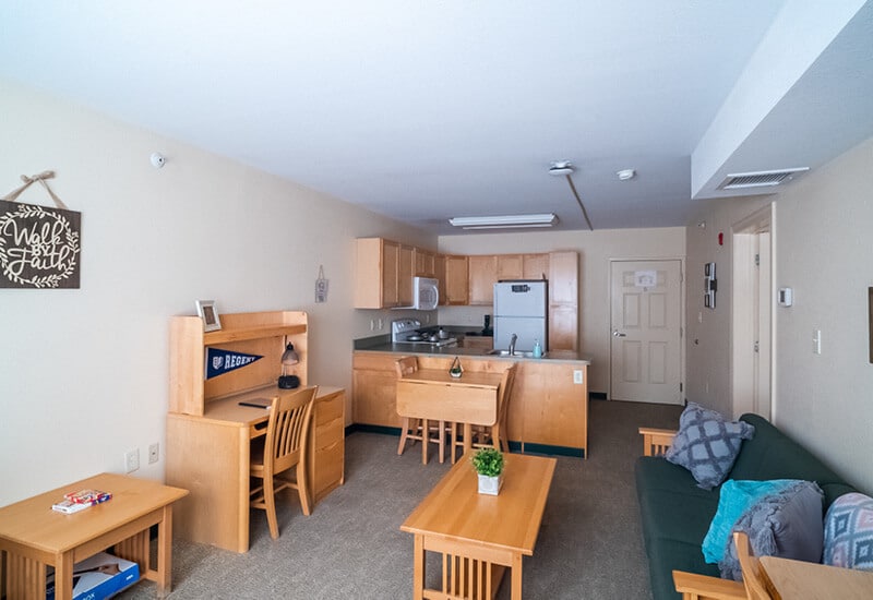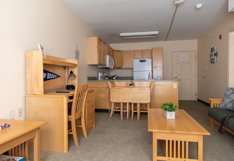 Regent Commons and Regent Village are fully furnished, and additional furniture is not permitted. Students assigned to Phase II single occupancies may bring their own furniture, as those apartments are not furnished.